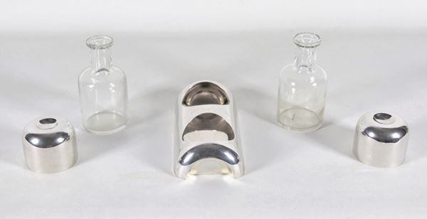 Silver cruet with glass ampoules, Designer De Vecchi, gr. 470
