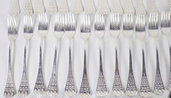 consisting of: 12 large spoons, 24 large forks, 24 large knives, 12 small forks and 12 small knives.