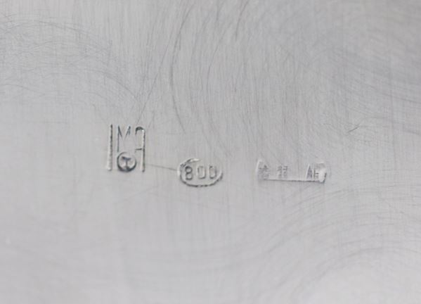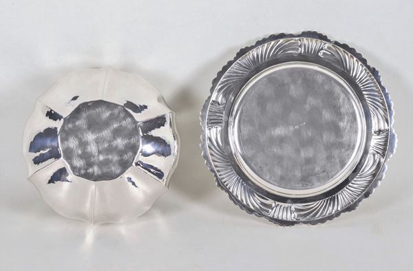 Silver lot of a round arched bowl and a round saucer with embossed palmette edge (2 pcs), gr. 670