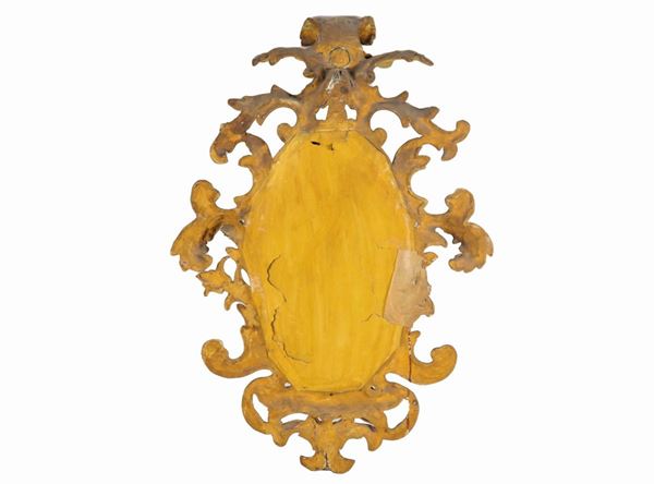 Small mirror in gilded wood and carved with Louis XV motifs of scrolls of acanthus leaves and curls, mercury mirror