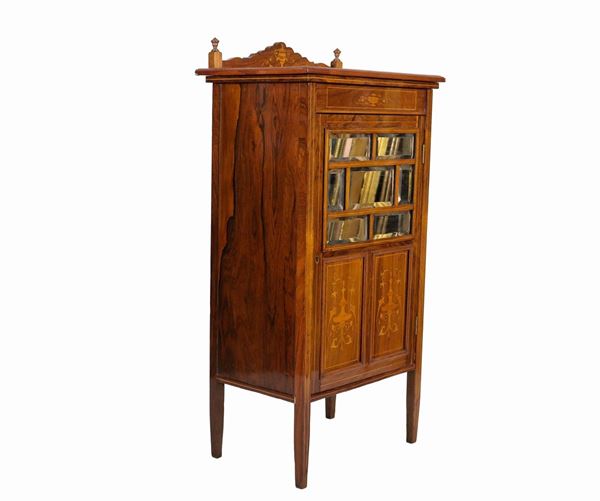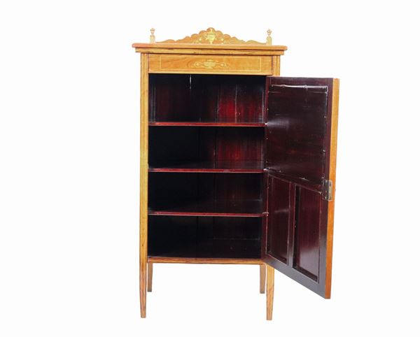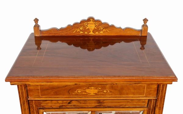 Small sideboard in Edward VII period walnut, with inlays in satin wood with motifs of amphorae and flowers