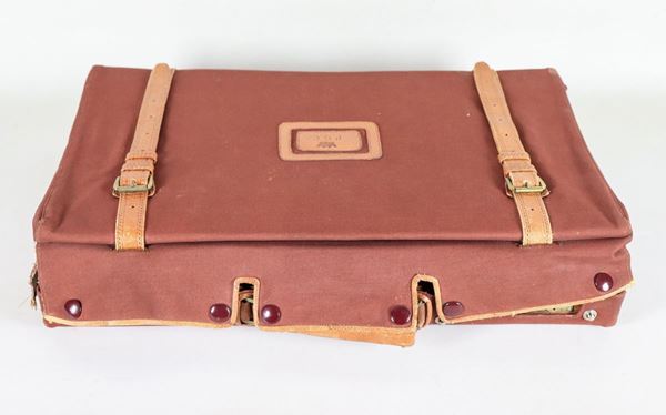 Travel toiletry set, in 925 silver and crystal, enclosed in a leather case with defective canvas lining