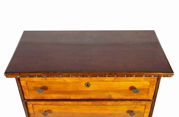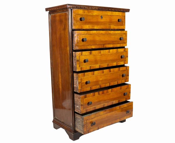 Venetian chest of drawers in walnut with geometric patterned boxwood threads, 6 drawers