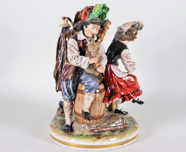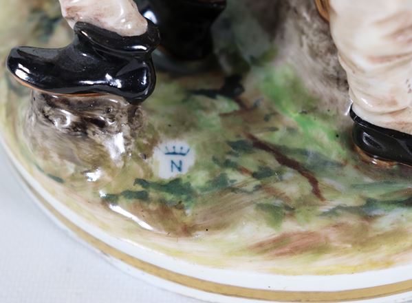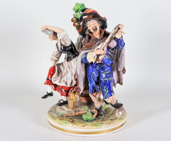 "Beggars players" group, in polychrome and enamelled Capodimonte porcelain