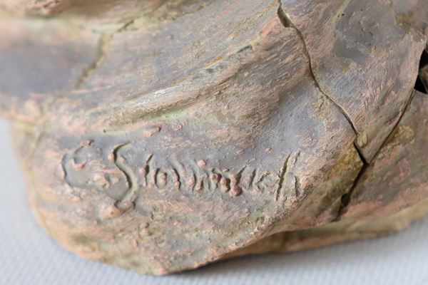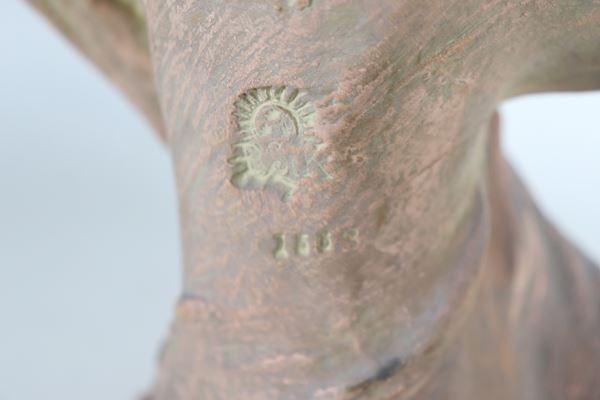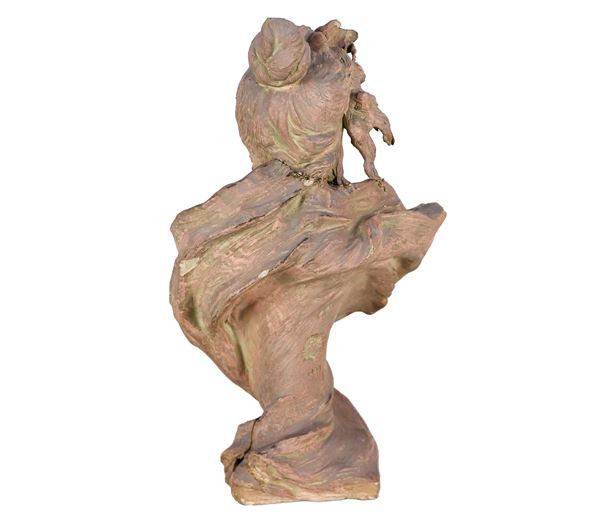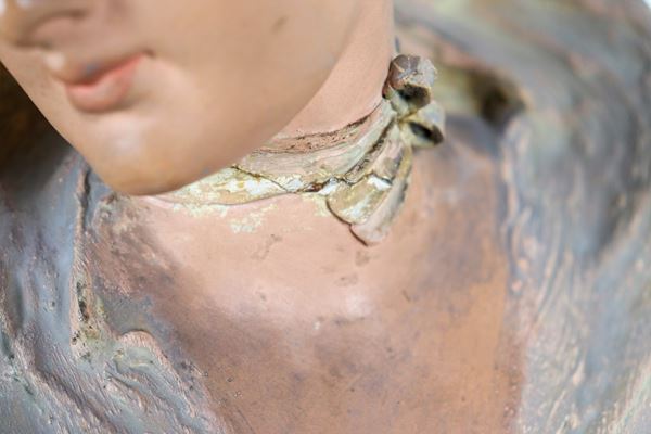 "Young lady", an ancient small French bust in patinated terracotta. Signed