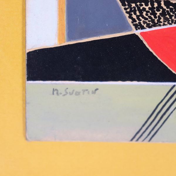 "Abstract Faces", pair of small mixed media paintings on cardboard