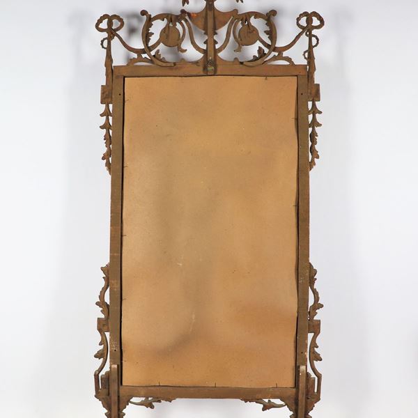 Ancient mirror in lacquered wood, with gilded and carved friezes with Louis XVI motifs of volutes, calatines of flowers and rosettes, amphora [..]