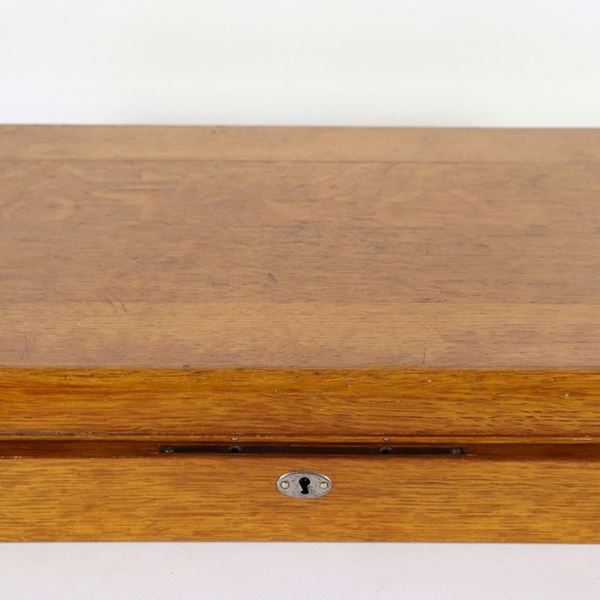 composed of: !2 forks, 12 knives and 2 serving cutlery, attached original oak case.