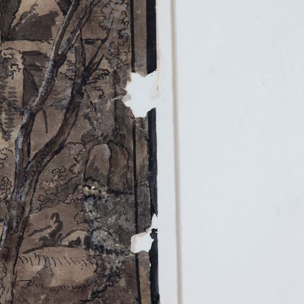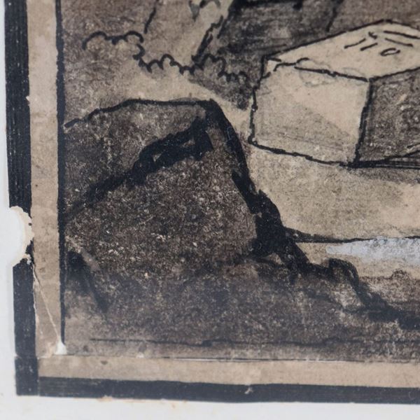 "Collection of rubble after the 1693 earthquake in eastern Sicily", ink drawing, watercolour, charcoal and white lead on paper