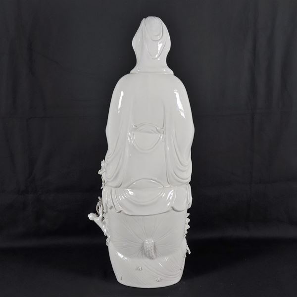 "Guanyin with allegory of small Buddhas", large Chinese sculpture in white porcelain, some minor flaws