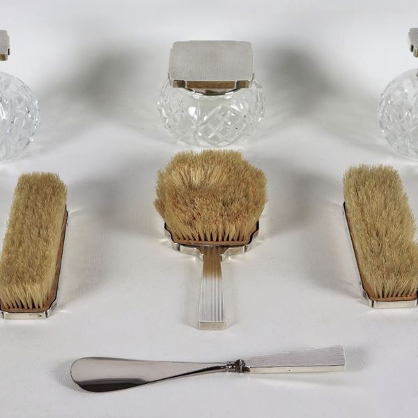 composed of: 2 crystal perfume bottles, 1 crystal powder compact, 3 brushes and 1 shoehorn.