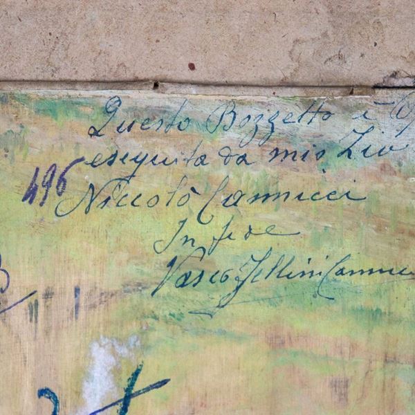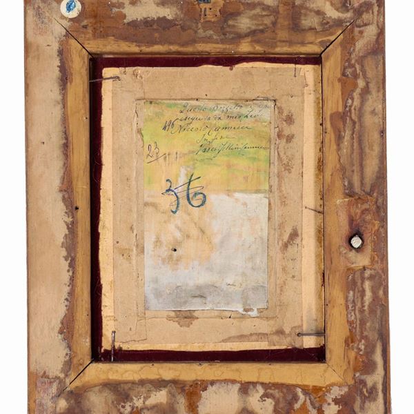 Authentication by nephew Vasco Fellini Cannicci on the back of the sketch. Gilded wooden frame, 18.5 x 11.5 cm.