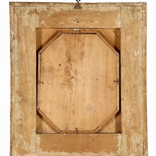 ancient frame in gilded and carved wood from a later period. The frame is missing a small rose, 23 x 19 cm.