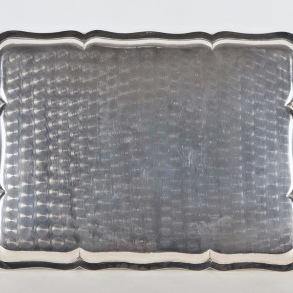 Large rectangular silver tray with curved and embossed edge, gr. 4270