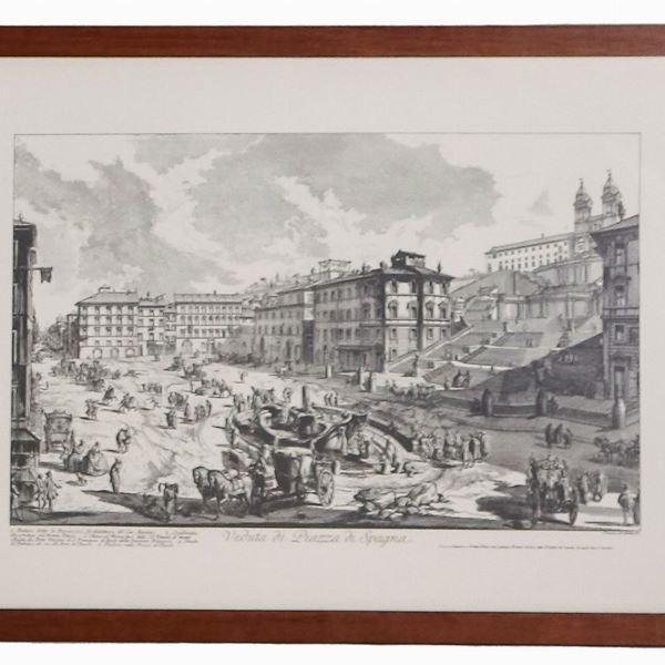Lot of three prints "San Pietro, Castel Sant'Angelo and the Spanish Steps"