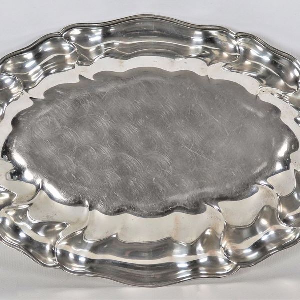 Oval centerpiece in silver with arched and embossed edge, gr. 350
