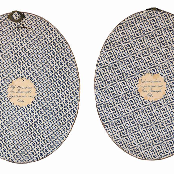 Pair of oval miniatures "Vases with bunches of flowers", painted in oil on copper