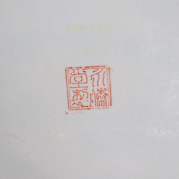 Pair of wall plates in oriental porcelain, decorated and colorful with "coats of arms"