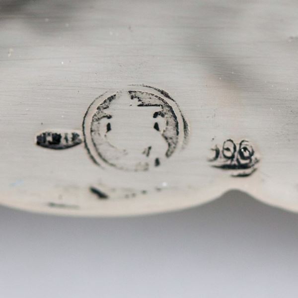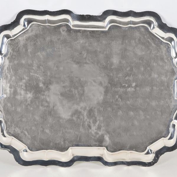 Rectangular arched silver tray with chiseled and embossed edges. The bottom has two small spots, gr. 1270