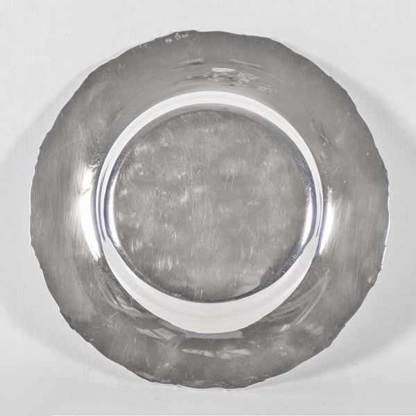 Round silver plate with chiselled and embossed edge, gr. 280