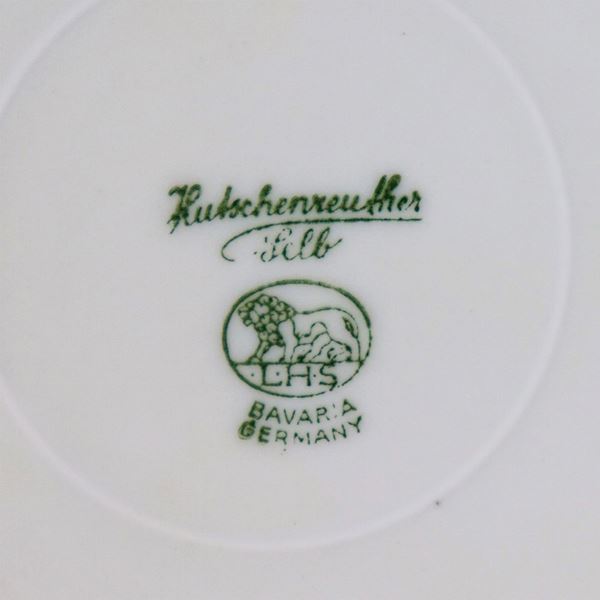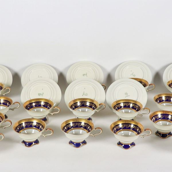Set of 24 tea cups with saucers and 26 dessert plates in German porcelain, with pure gold edges and cobalt blue band with floral intertwining [..]