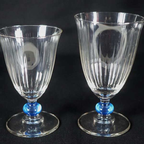 Set of crystal goblet glasses with stem in blue (24 pcs)