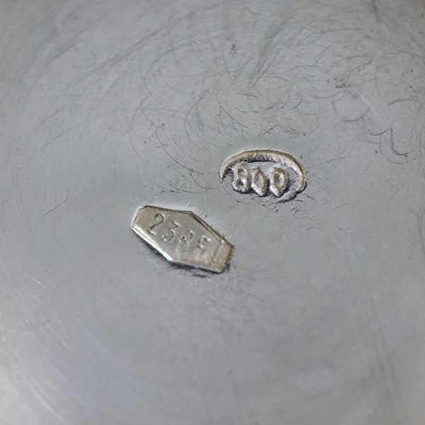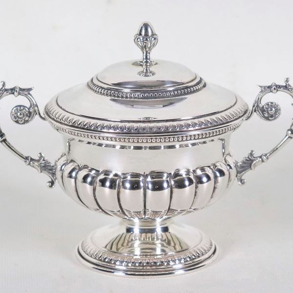 Silver sugar bowl in the shape of an amphora, chiseled and embossed with Empire motifs, gr. 280