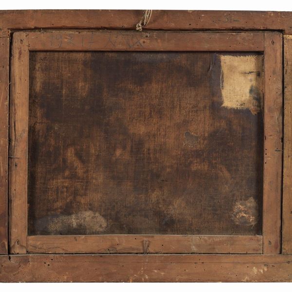 antique frame in gilded, carved and black lacquered wood. The canvas has defects and a small tear, 52 x 64 cm.