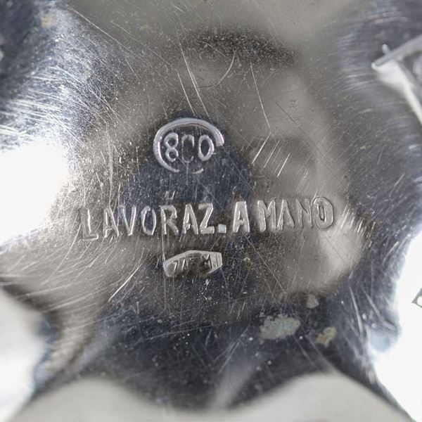 Small ladle in chiseled and embossed silver with Louis XV motifs, turned wooden handle