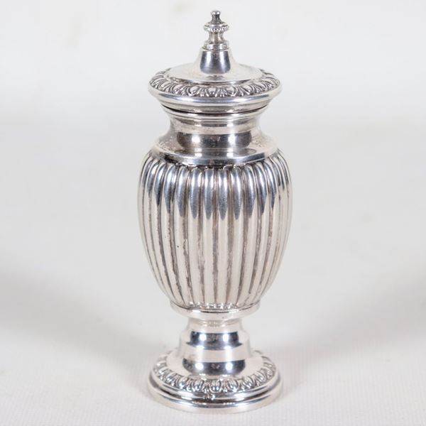 Small silver pepper mill in the shape of an amphora