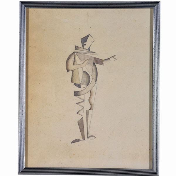 "Studies of abstract mannequins", lot of three pencil drawings on paper