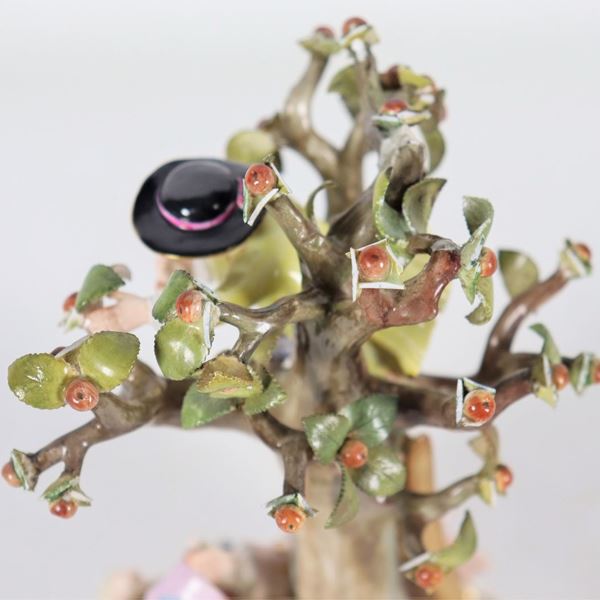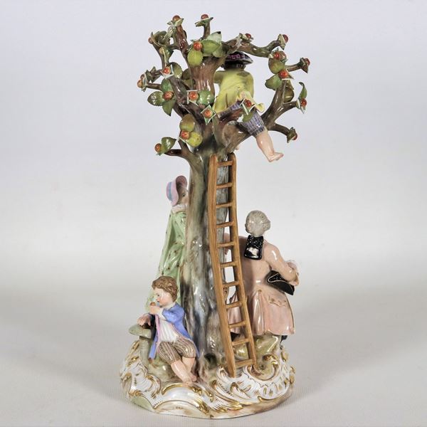 "The Apple Harvest", group in polychrome porcelain from Meissen