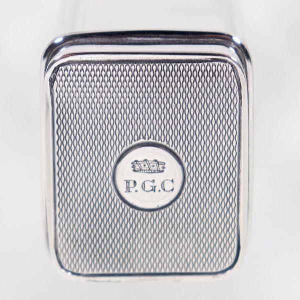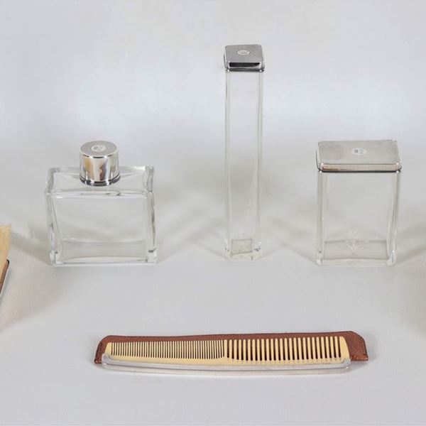 Toilet set in crystal and 925 silver, with crown and engraved monogram (6 pcs)