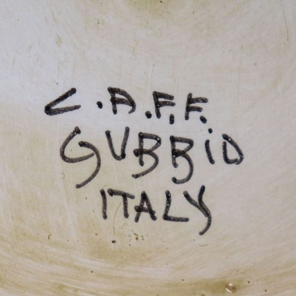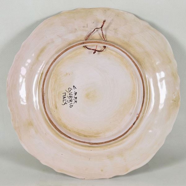 Wall plate in Gubbio majolica, with blue decorations "Duel between knights"