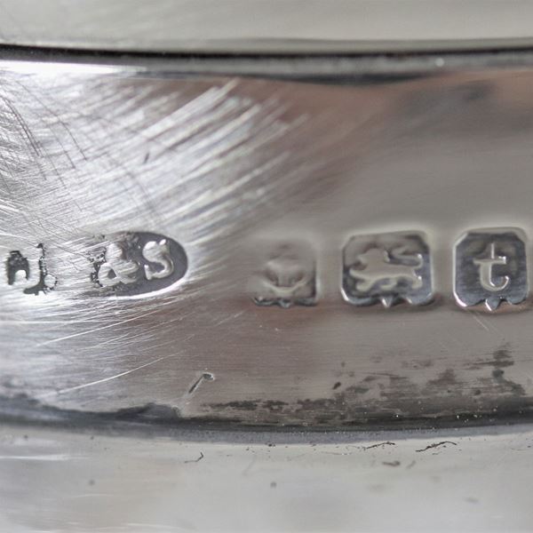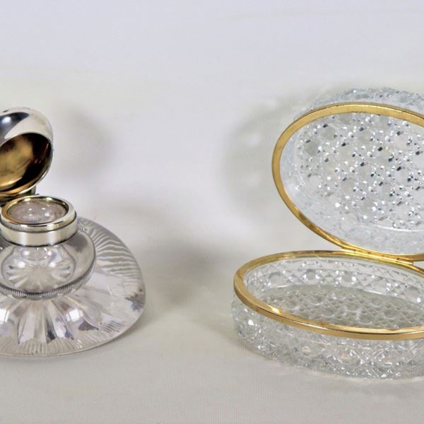 Lot of an oval box in worked crystal and an inkwell in silver and crystal, stamps Birmingham 1918