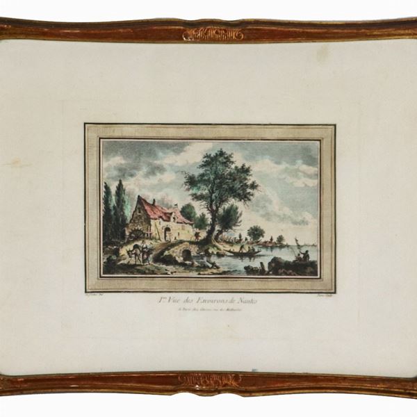 gilded wooden frames and passepartout, 20 x 25 cm each.