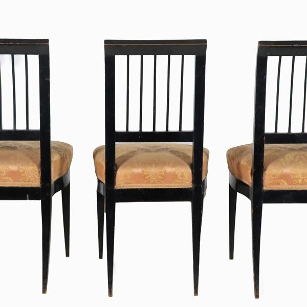 Lot of three antique chairs in ebonized wood, with inlays with floral intertwining motifs, openwork backs and four inverted pyramid legs. Havana [..]