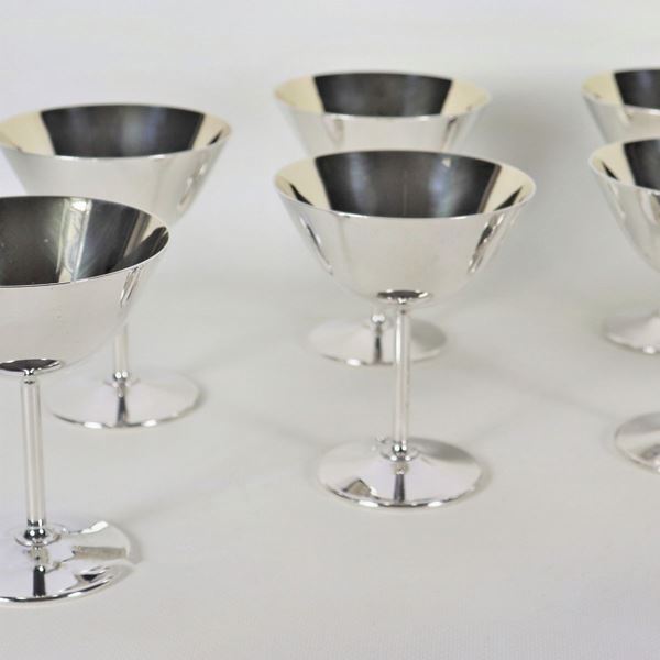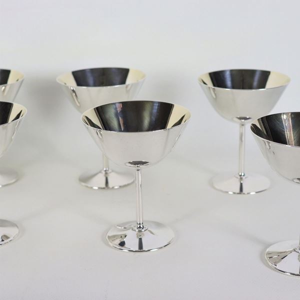 Lot of twelve ice cream bowls in silver metal, traces of vermeil inside