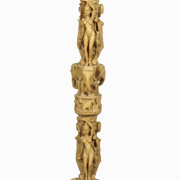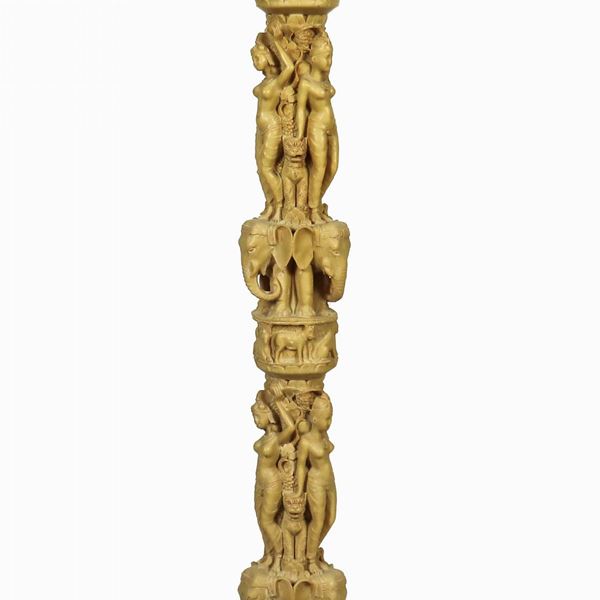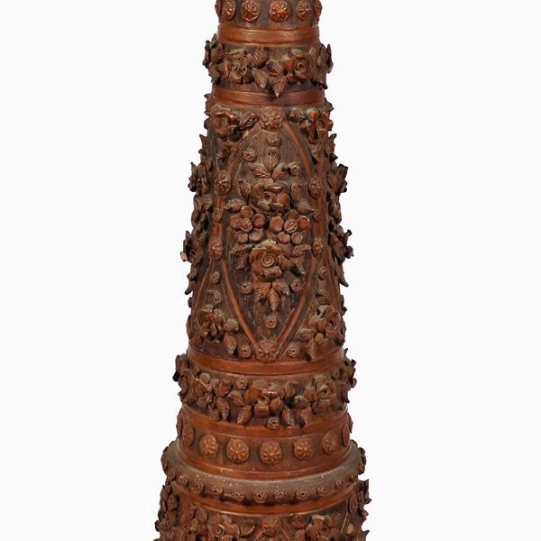 Lot of two columns, one in terracotta and one in imitation marble with various carvings