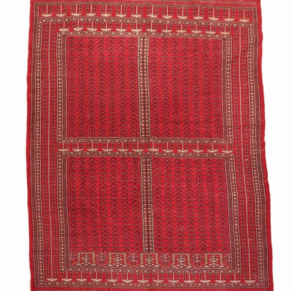Persian carpet with geometric designs on a red background, 2.90 x 1.82 m.