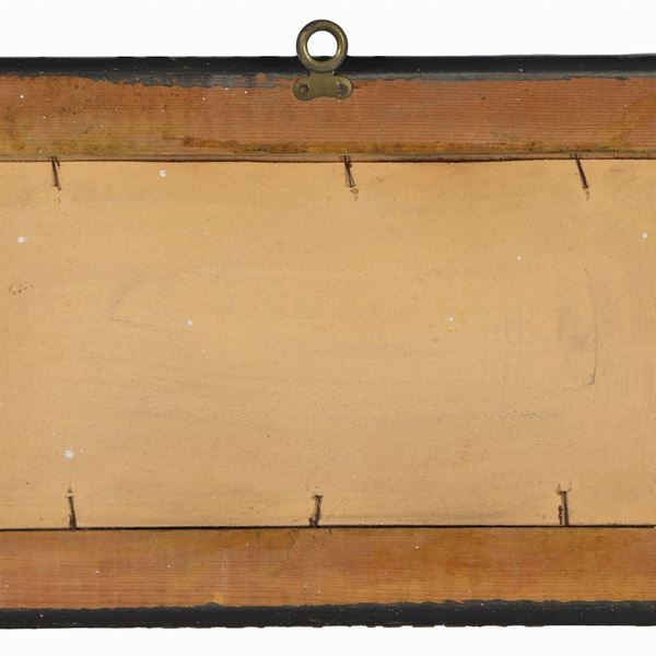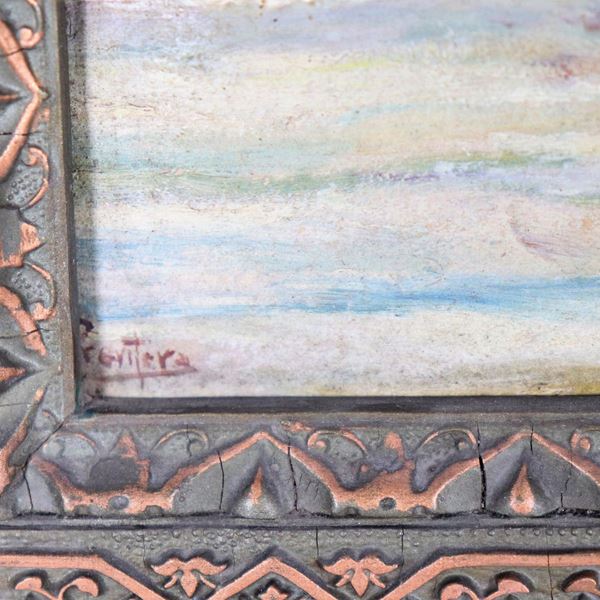 Signed. "Marina with fishing boats", small oil painting on cardboard