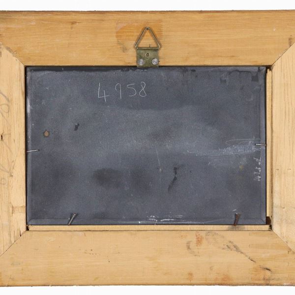 "Birds with butterflies", small plaque in black Belgian marble with polychrome inlays of various precious marbles