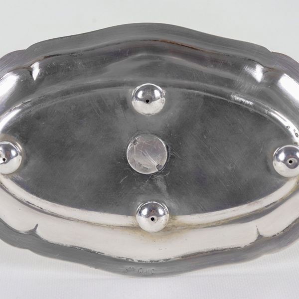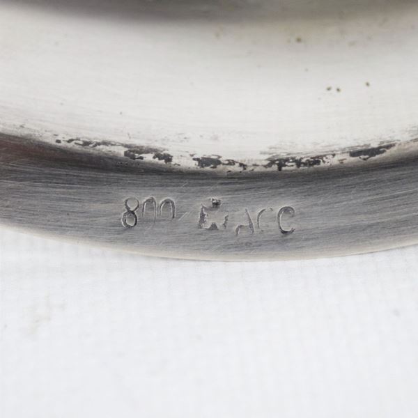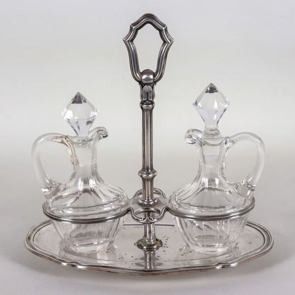 Chiseled and embossed silver cruet with two crystal cruets, gr. 360
