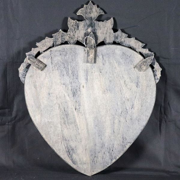 Heart-shaped mirror in Murano glass, entirely engraved with floral motifs