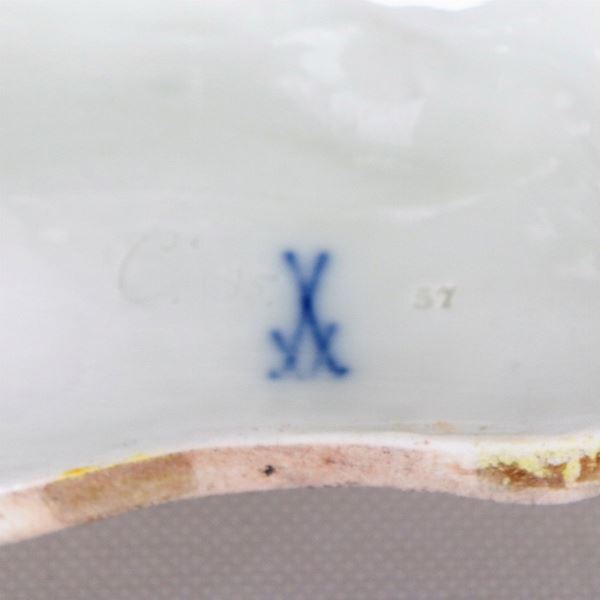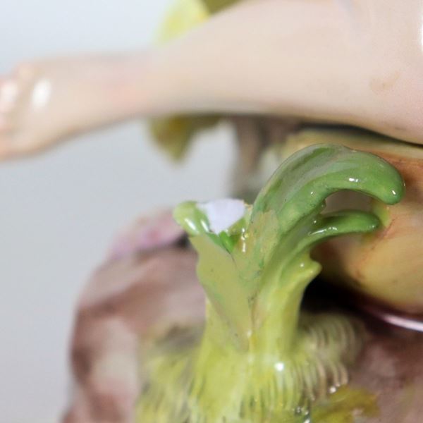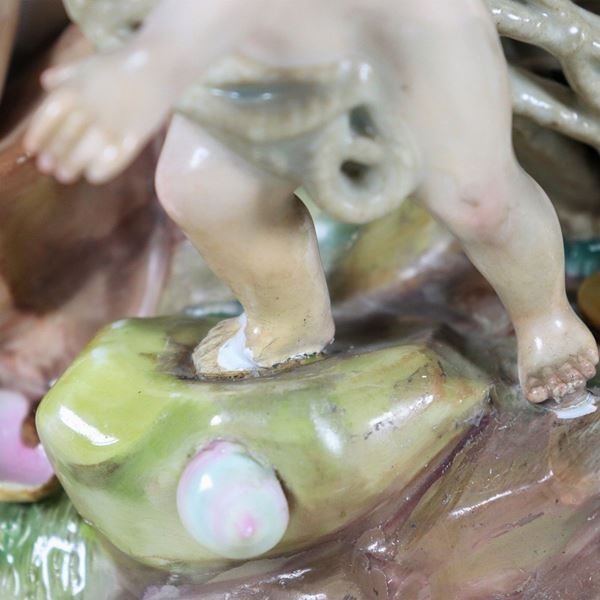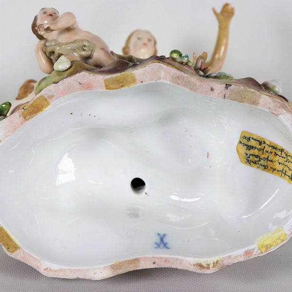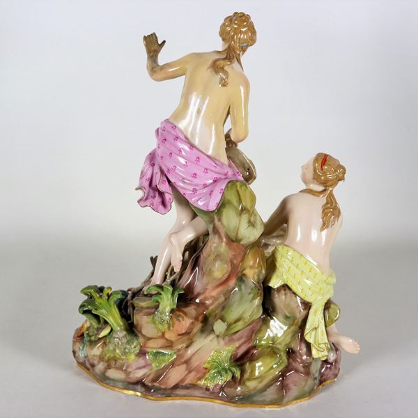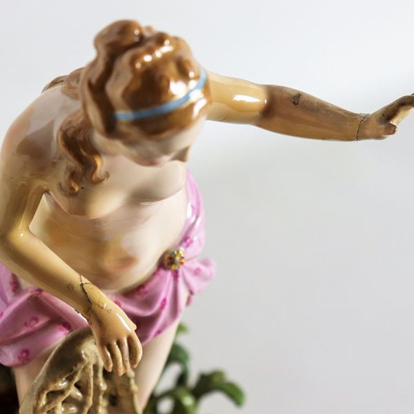 "Mythological allegory", ancient group in polychrome porcelain from Meissen, breakages and missing parts