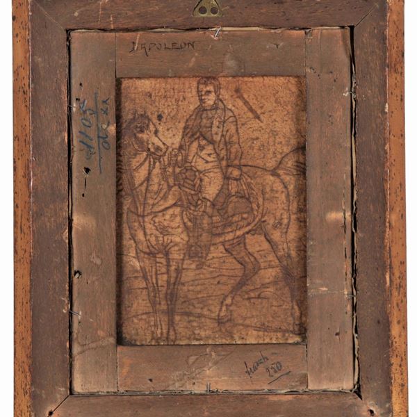 Signed. "Napoleon on horseback", small oil painting on canvas