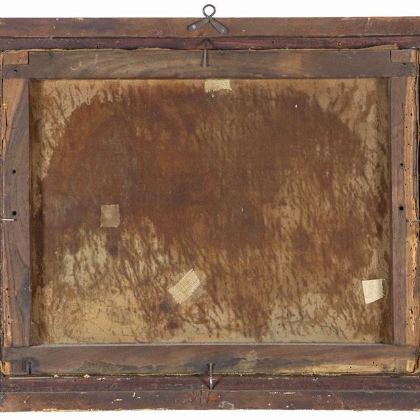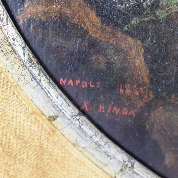 Signed and inscribed Naples 1869. "View of Capri from the Sorrento Coast", small oval oil painting on canvas