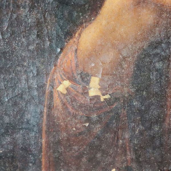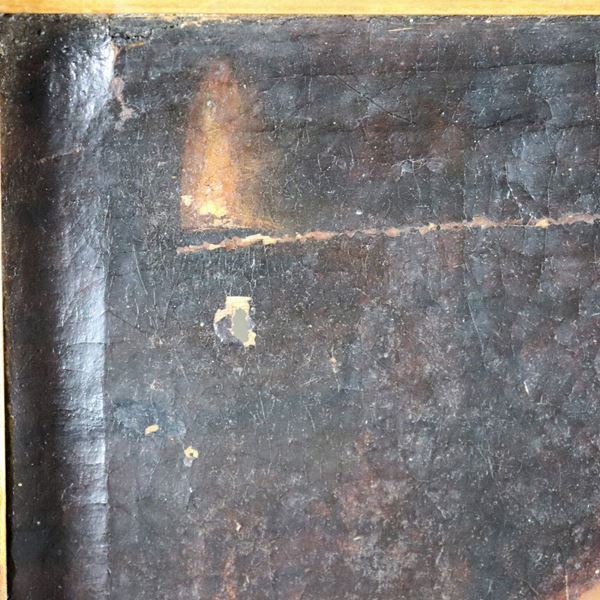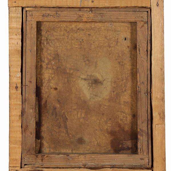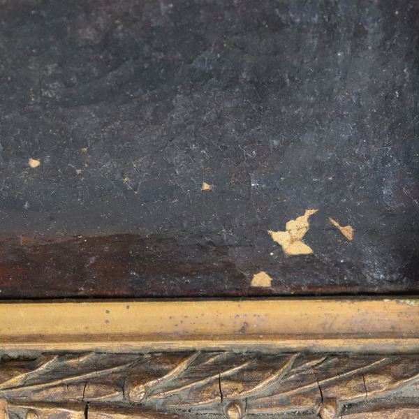 "The rest of Venus with cupid", small oil painting on canvas in an ancient gilded and carved wooden frame. Various defects on the canvas and [..]
