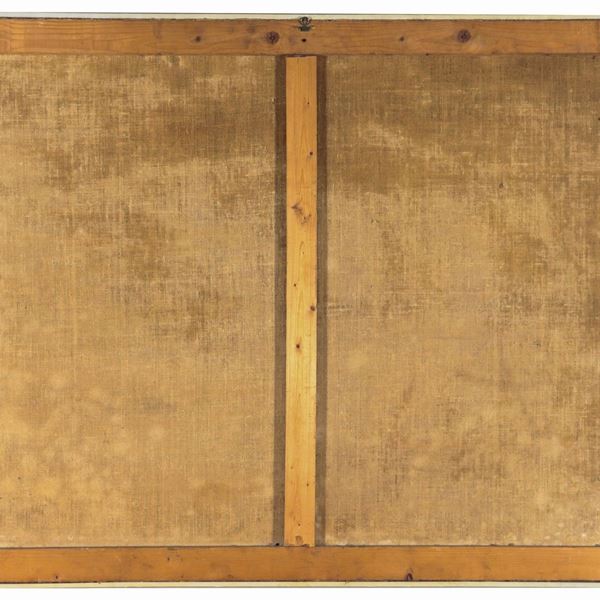 "Landscape with castle, wayfarers and watercourse", oil painting on canvas