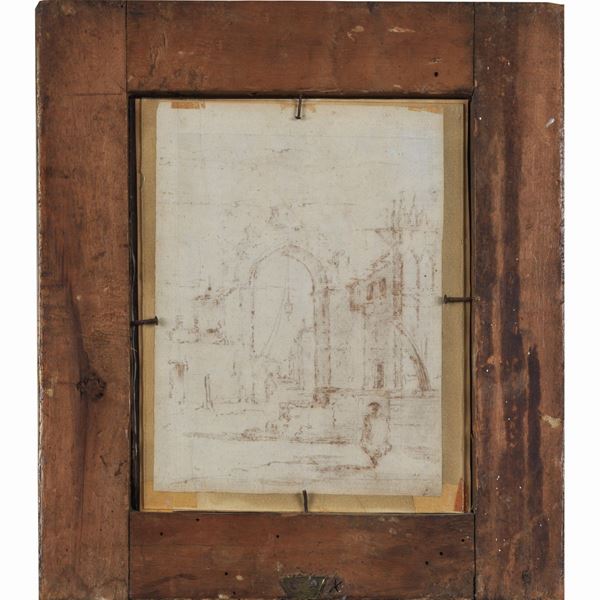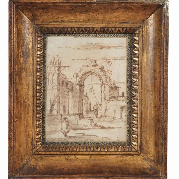 "Capriccio Veneziano", ancient small ink drawing on paper